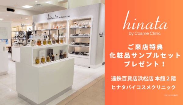 この広告を見た方限定! 遠鉄百貨店本館2階ヒナタパイコスメクリニックにてカウンセリング後化粧品サンプルセットをプレゼント。 数量限定 なくなり次第終了!